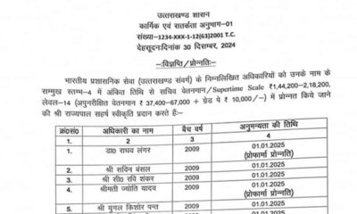 December 30, 2024उत्तराखंड में साल 2024 के अंतिम दिनों में आईएएस अधिकारियों को प्रमोशन का तोहफा मिला है।...