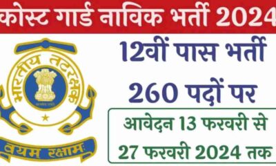 इंडियन कोस्ट गार्ड नाविक जीडी भर्ती 2024; निकली 260 पदों पर नियुक्तियां…