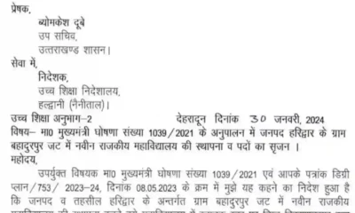 उत्तराखंड में यहां खुला नया डिग्री काॅलेज, 21 पदों पर रोजगार का अवसर…
