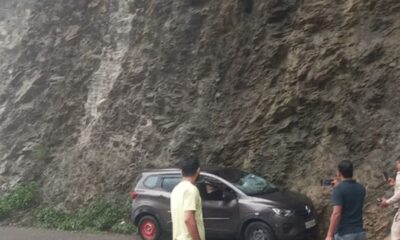 कांडीखाल के पास पहाड़ी से पत्थर गिरकर कार पर जा गिरा, चार लोग थे सवार…