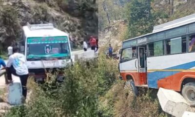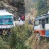 घनसाली मयाली मोटर मार्ग बारात लेकर जा रही बस खाई की ओर लटकी, 30 लोगों की बाल-बाल बची जान