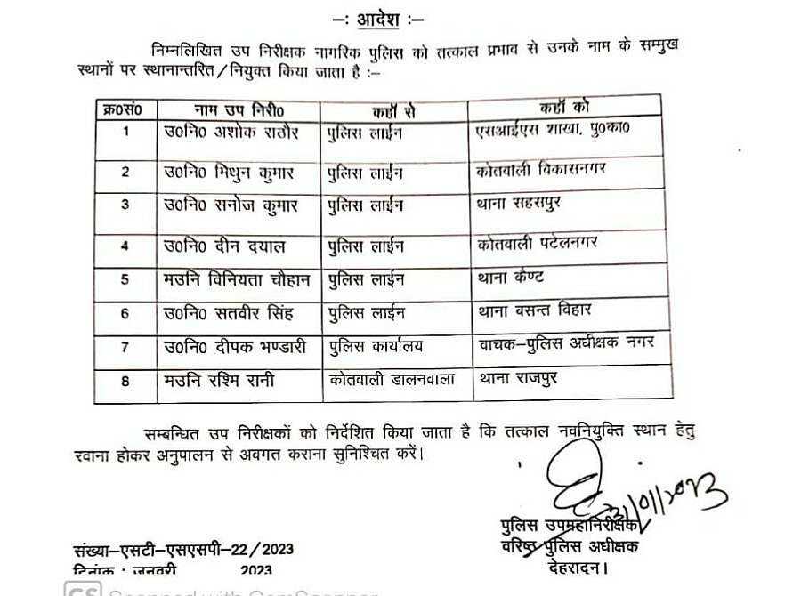 एसएसपी देहरादून ने जिले के कई पुलिसकर्मियों के ट्रांफसर कर दिए गए हैं।