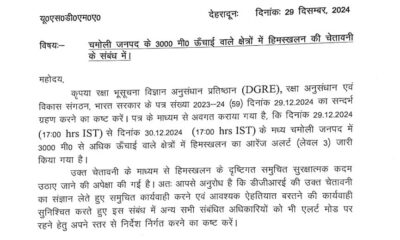 चमोली जनपद में हिमस्खलन का आरेंज अलर्ट, डीजीआरई ने दी यह चेतावनी…