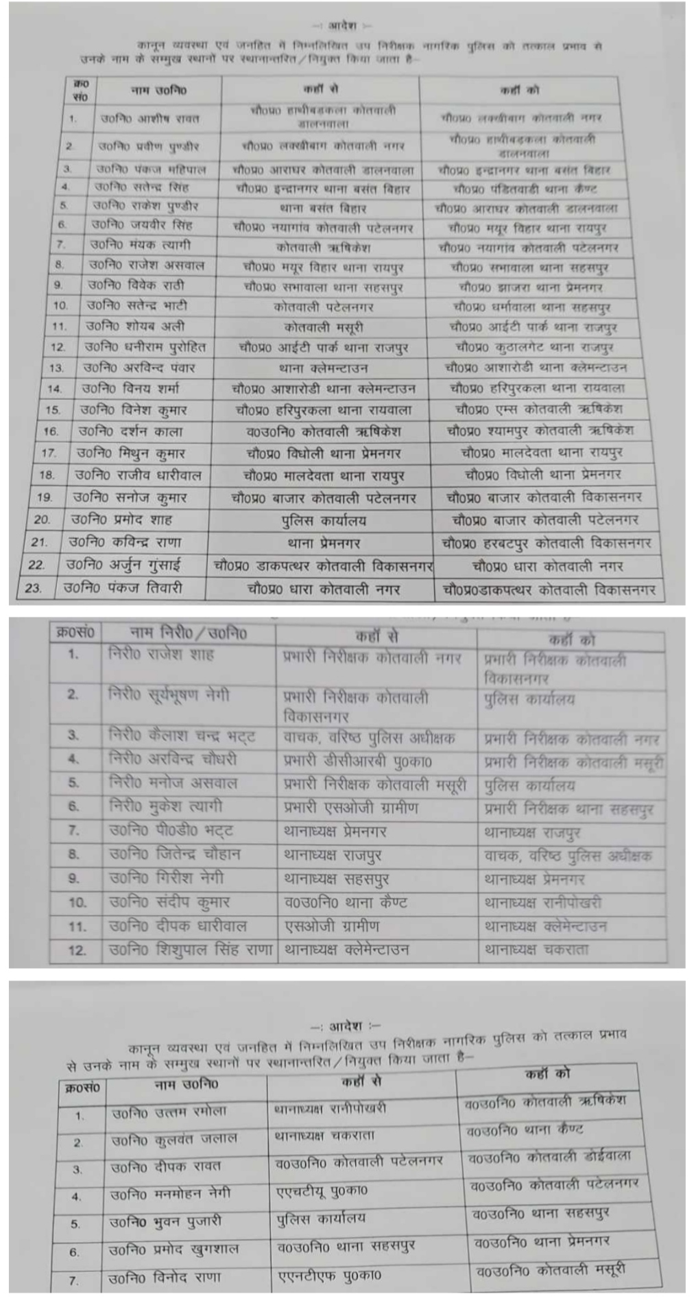 24- उपनिरीक्षक राकेश पुंडीर को थाना बसंत विहार से चौकी प्रभारी आरघर कोतवाली डालनवाला भेजा गया।