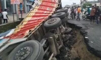 BIG BREAKING: यहां तीन दिन में ही धंस गई 9 करोड़ की सड़क, पलट गया ट्रक…